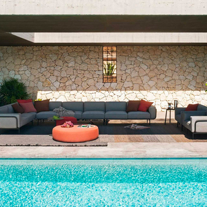 تضم المجموعة أرائك خارجية معيارية، كراسي استرخاء، كراسي وطاولات طعام خارجية، وأسِرّة شمسية مزدوجة—كلها ترتكز على هياكل من الألمنيوم المطلي بالبودرة ومبطنة بأقمشة خارجية عالية الأداء قابلة للإزالة.